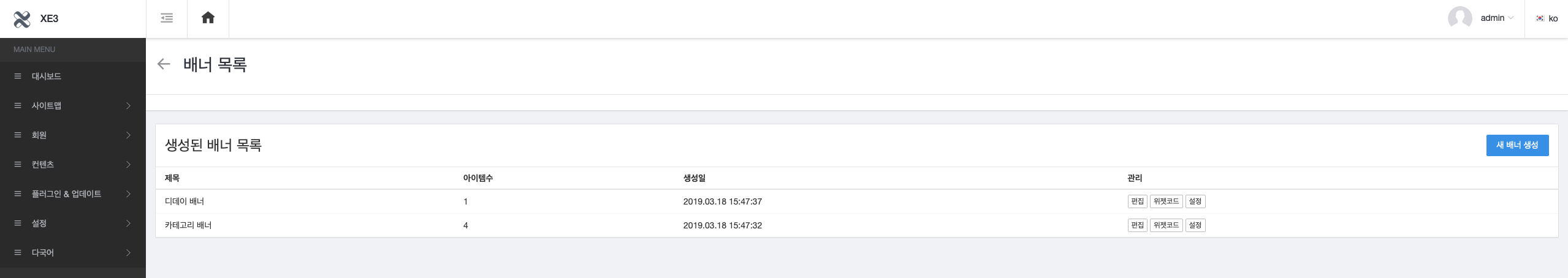 사이트관리 > 플러그인 > 설치된 플러그인 > 배너 설정